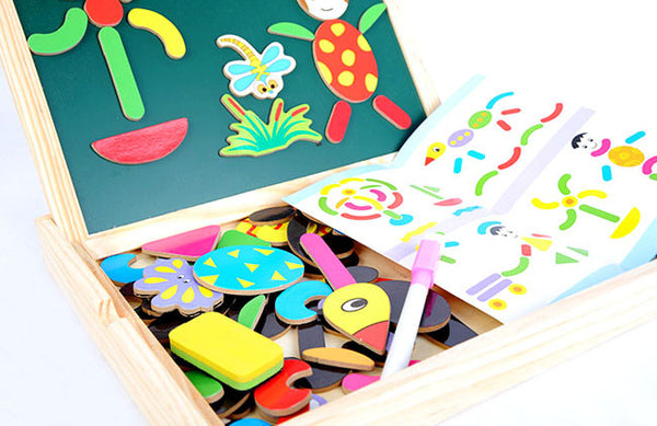 Gồm nhiều mảnh ghép sinh động có hình ảnh các loài vật, cây cối, mặt sau có nam châm cố định được trêm bảng ghép. Nhiều màu sắc bắt mắt, kích thích trí tưởng tượng và khả năng quan sát của trẻ.